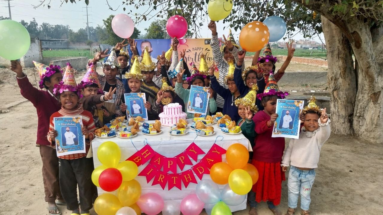 Shared joy with 20 thaali meals, 1-kg cake, sweets, snacks, and balloons to make their day special.